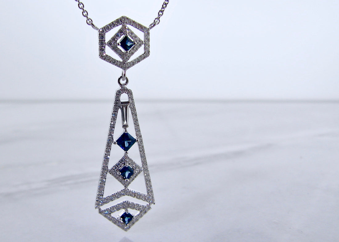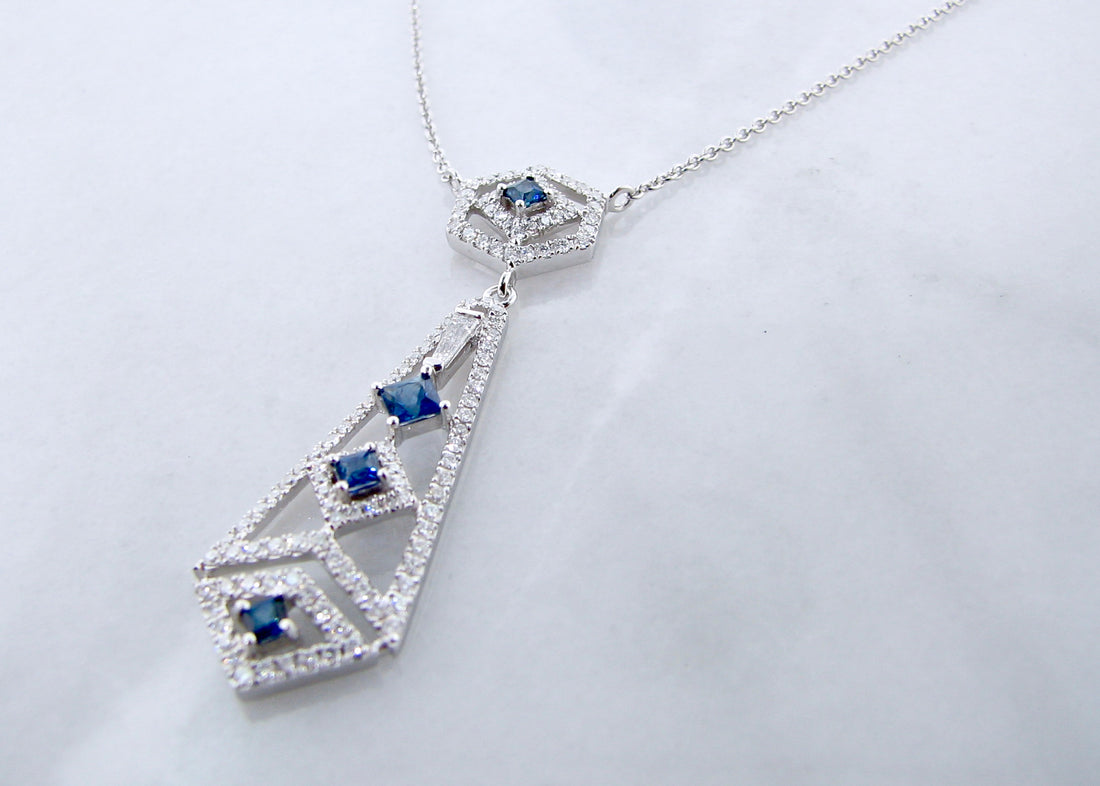 Sapphire Diamond White Gold Necklace, HiveSapphire Diamond White Gold Necklace, Hive- Regular price