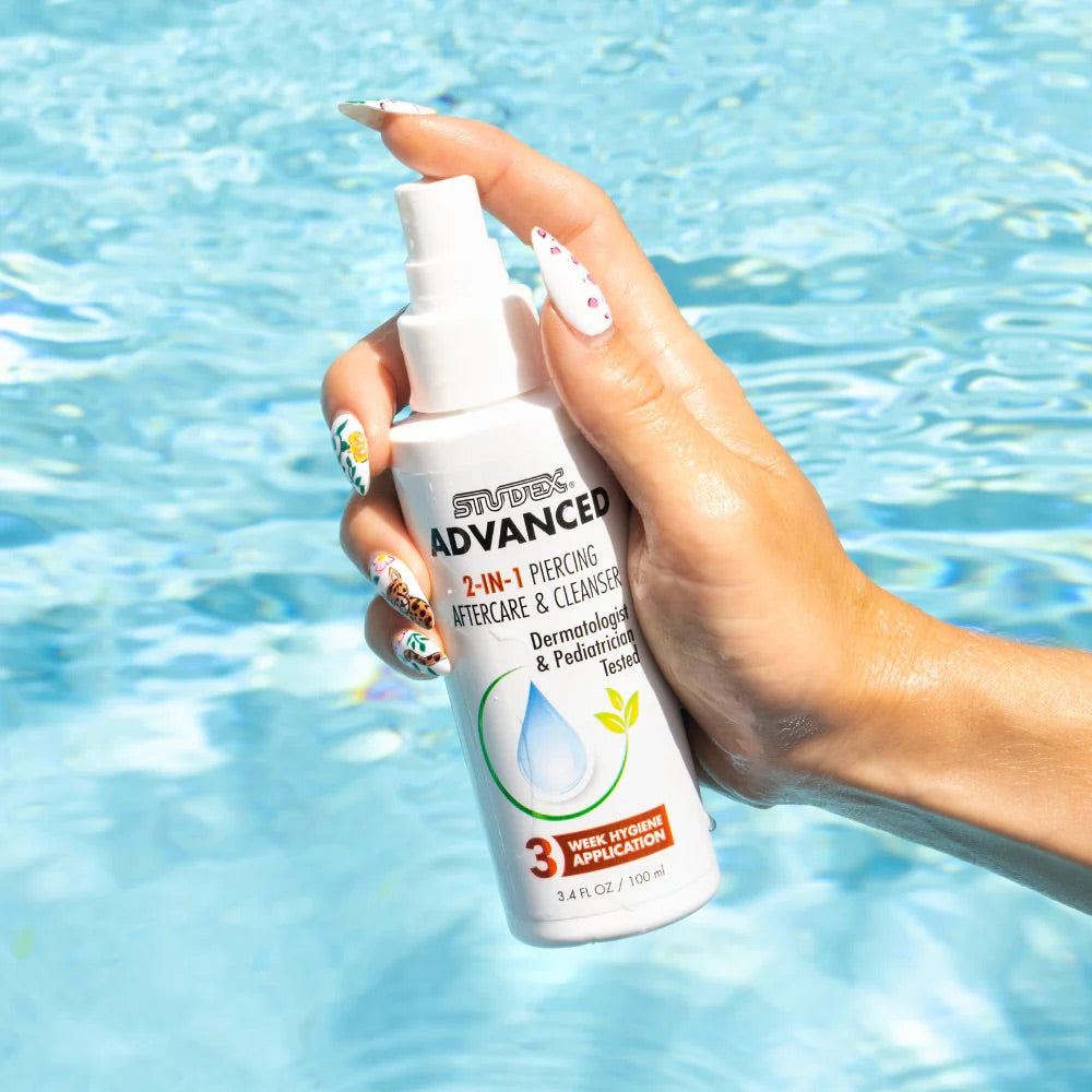 Improper aftercare is the number one cause of piercing irritation, which is why we recommend upgrading to Advanced 2-in-1 Piercing Aftercare & Cleanser, a dermatologist and pediatrician tested spray that is safe, soothing, and proven to help your skin recover faster.