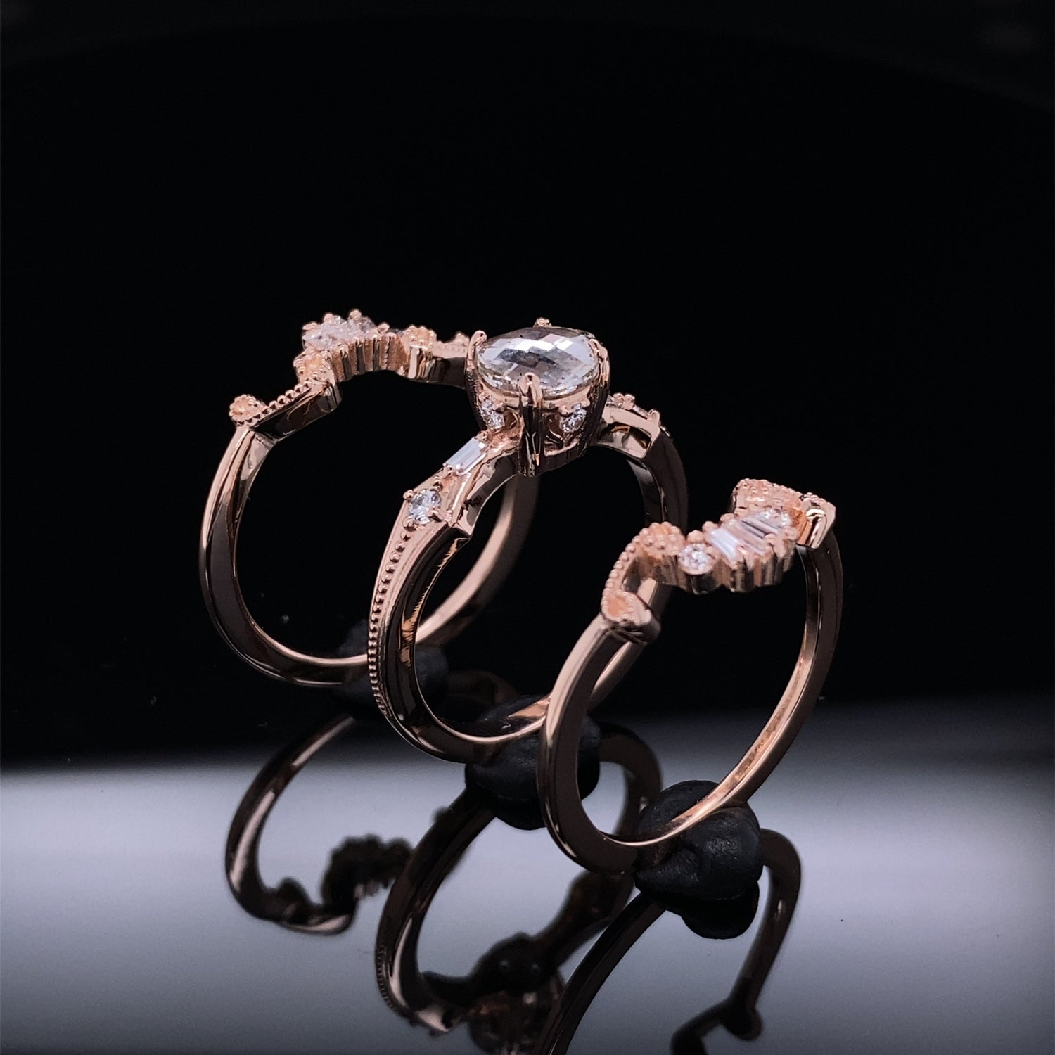 Checkerboard Diamond Renaissance Three Piece Bridal Set