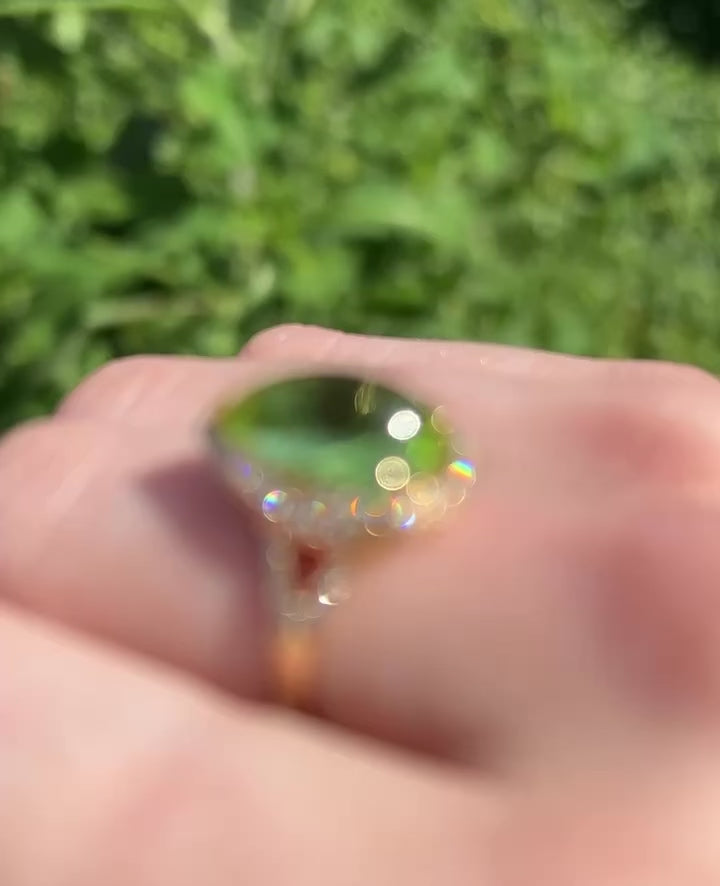 One of a Kind. 4.99ct juicy glowing natural peridot cabochon cut and polished to perfection in a gum drop pear shape.