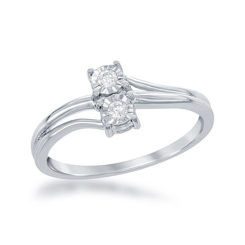 Description: Celebrate the alignment of your love with this exquisite Sterling Silver Two-Stone Diamond Overlapping Ring. Featuring two stunning diamonds totaling 0.08 carats, this promise ring symbolizes the perfect union. Crafted with sterling silver, it showcases a unique overlapping design for a modern touch.
